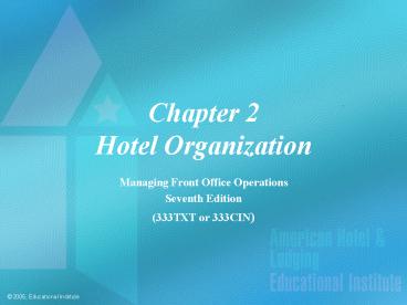 Chapter 2 Hotel Organization PowerPoint PPT Presentation