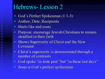Hebrews Lesson 2 PowerPoint PPT Presentation