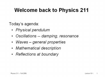 1Welcome back to Physics 211