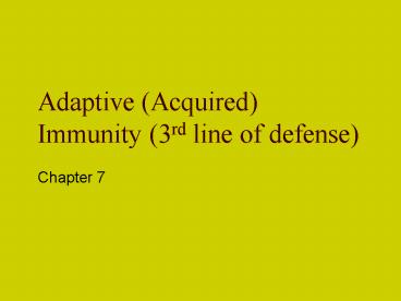 Title: Adaptive Acquired Immunity 3rd line of defense