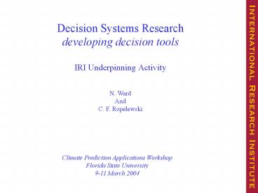 <Notice: Removed> Decision Systems Research developing decision tools IRI Underpinning Activity PowerPoint PPT Presentation