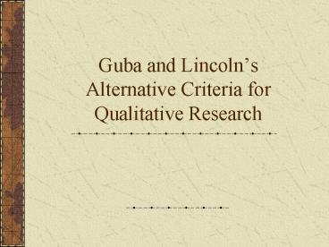 Guba and Lincolns Alternative Criteria for Qualitative Research PowerPoint PPT Presentation