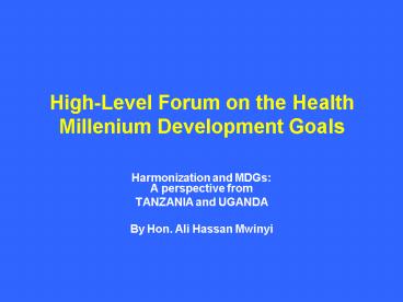 Title: HighLevel Forum on the Health Millenium Development Goals