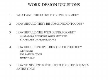 WORK DESIGN DECISIONS PowerPoint PPT Presentation