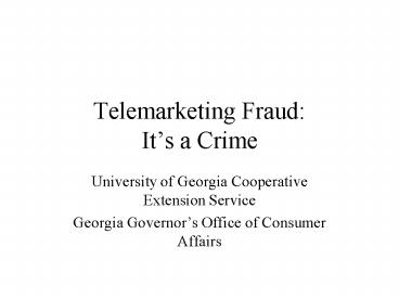 Title: Telemarketing Fraud: Its a Crime