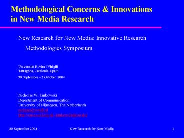 1Methodological Concerns Innovations in New