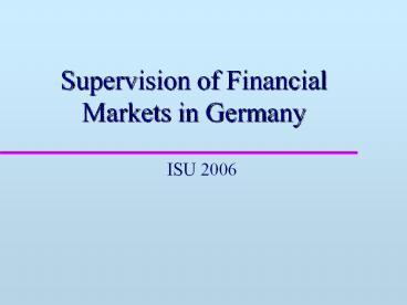 Versicherungswesen - BAV) and - securities supervision (Bundesaufsichtsamt für