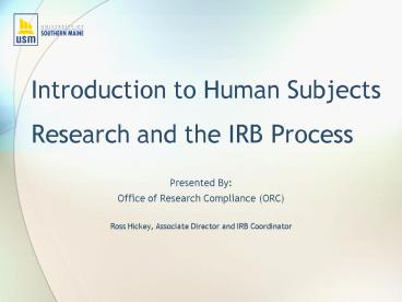 purposes of human subjects research compliance - The IRB and the ORC are the only legally