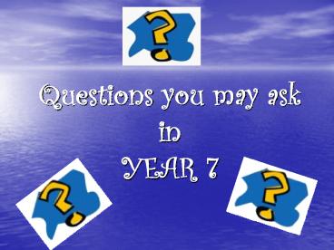 Questions you may ask in YEAR 7 PowerPoint PPT Presentation