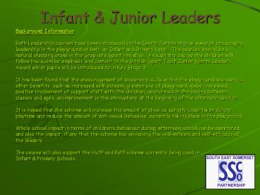 the Sports Partnership as a way of encouraging - leadership in the playground at both an Infant