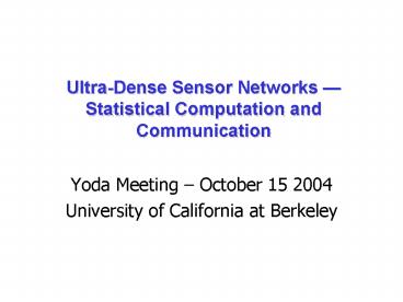 Title: UltraDense Sensor Networks Statistical Computation and Communication