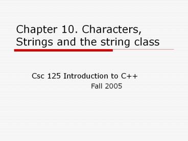 Chapter 10. Characters, Strings and the string class - PowerPoint PPT Presentation