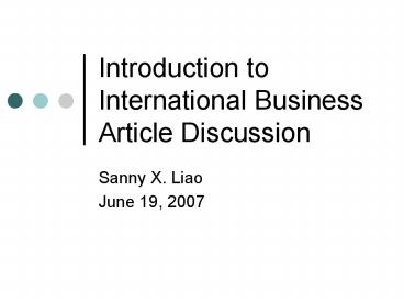Introduction to International Business Article Discussion PowerPoint PPT Presentation