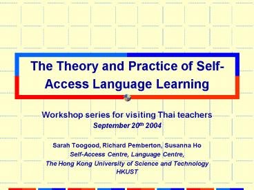 <Notice: Removed> The Theory and Practice of SelfAccess Language Learning PowerPoint PPT Presentation