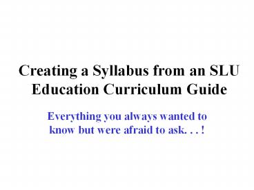 Title: Creating a Syllabus from an SLU Education Curriculum Guide