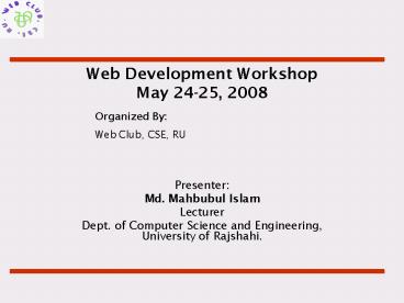 <Notice: Removed> Web Development Workshop May 2425, 2008 PowerPoint PPT Presentation