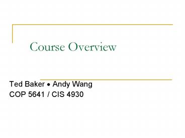 Course Overview - PowerPoint PPT Presentation