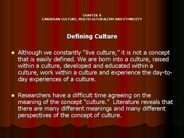 Title: CHAPTER 8 CANADIAN CULTURE, MULTICULTURALISM AND ETHNICITY