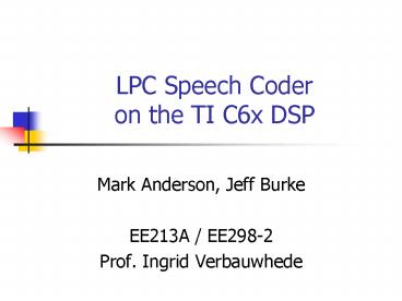 LPC Speech Coder on the TI C6x DSP PowerPoint PPT Presentation
