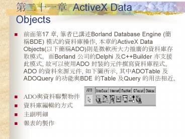 • ?BDE ???, ????????Table ?Query ??, ?ADO ??,