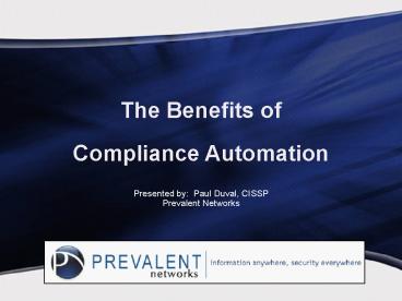 Presented by Paul Duval, CISSP Prevalent