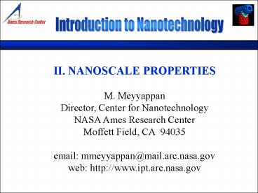 II. NANOSCALE PROPERTIES M. Meyyappan Director,