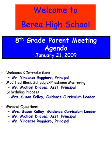 8th Grade Parent Meeting AgendaJanuary 21, 2009