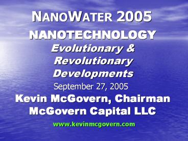 NANOTECHNOLOGY Evolutionary RevolutionaryDevel
