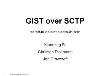 GIST over SCTP <draft-fu-nsis-ntlp-sctp-01.txt> PowerPoint PPT Presentation
