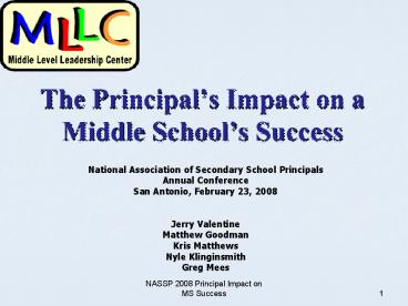 Student Assessment - Matt GoodmanPrincipals Impact on MS Programs and