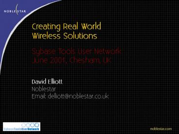 management solution is critical. - Examples Afaria, ScoutWare, Extended Connect,