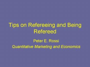 <Notice: Removed> Tips on Refereeing and Being Refereed PowerPoint PPT Presentation