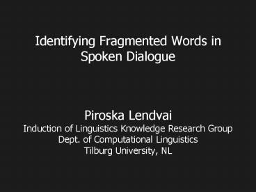 Identifying Fragmented Words in Spoken Dialogue PowerPoint PPT Presentation