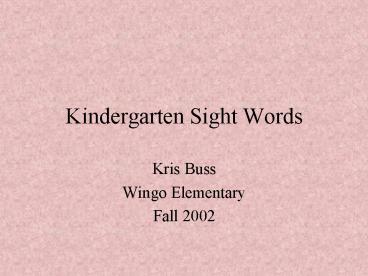 Kindergarten Sight Words PowerPoint PPT Presentation