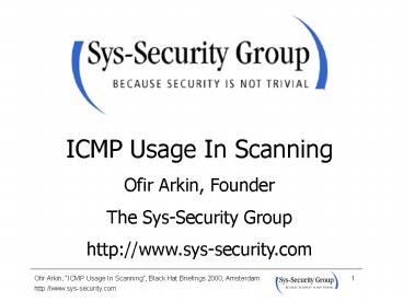 1ICMP Usage In Scanning Ofir Arkin, Founder The