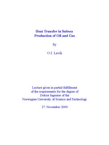 fluids above the hydrate temp. using PIPEPHASE. - Internal convective resistance assumed