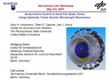 Title: QuasiActive Control of Axial Fan Blade Tones
