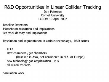 Riles, Chicago Linear Collider Workshop,