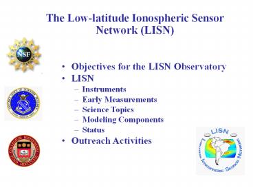 <Notice: Removed> The Lowlatitude Ionospheric Sensor Network LISN PowerPoint PPT Presentation