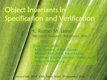 <Notice: Removed> Object Invariants in Specification and Verification PowerPoint PPT Presentation