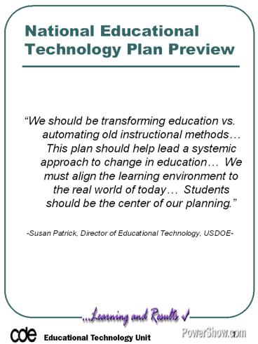 <Notice: Removed> National Educational Technology Plan Preview PowerPoint PPT Presentation