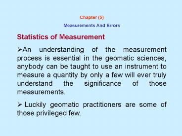- Statistics of Measurement