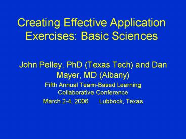 Creating Effective Application Exercises: Basic Sciences PowerPoint PPT Presentation