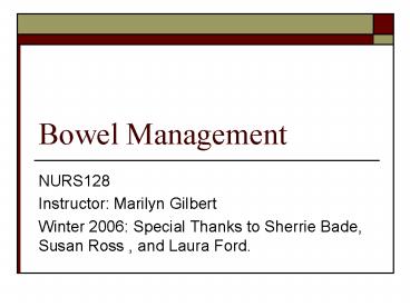 Bowel Management PowerPoint PPT Presentation