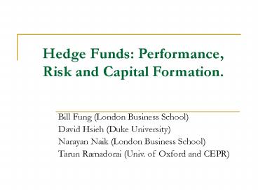 Title: Hedge Funds: Performance, Risk and Capital Formation.