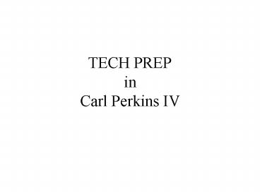 TECH PREP in Carl Perkins IV PowerPoint PPT Presentation