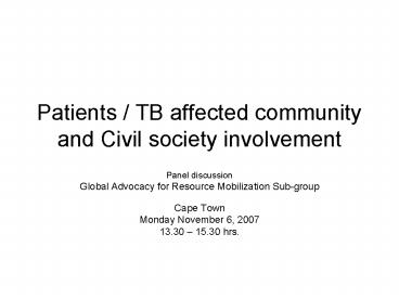 Title: Patients TB affected community and Civil society involvement