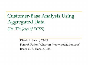 3The Pareto/NBD Model(Schmittlein, Morrison, and
