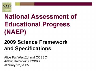 that should be included in NAEP Science - Propose a design for one or more small-scale