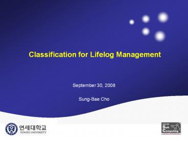 <Notice: Removed> Classification for Lifelog Management PowerPoint PPT Presentation